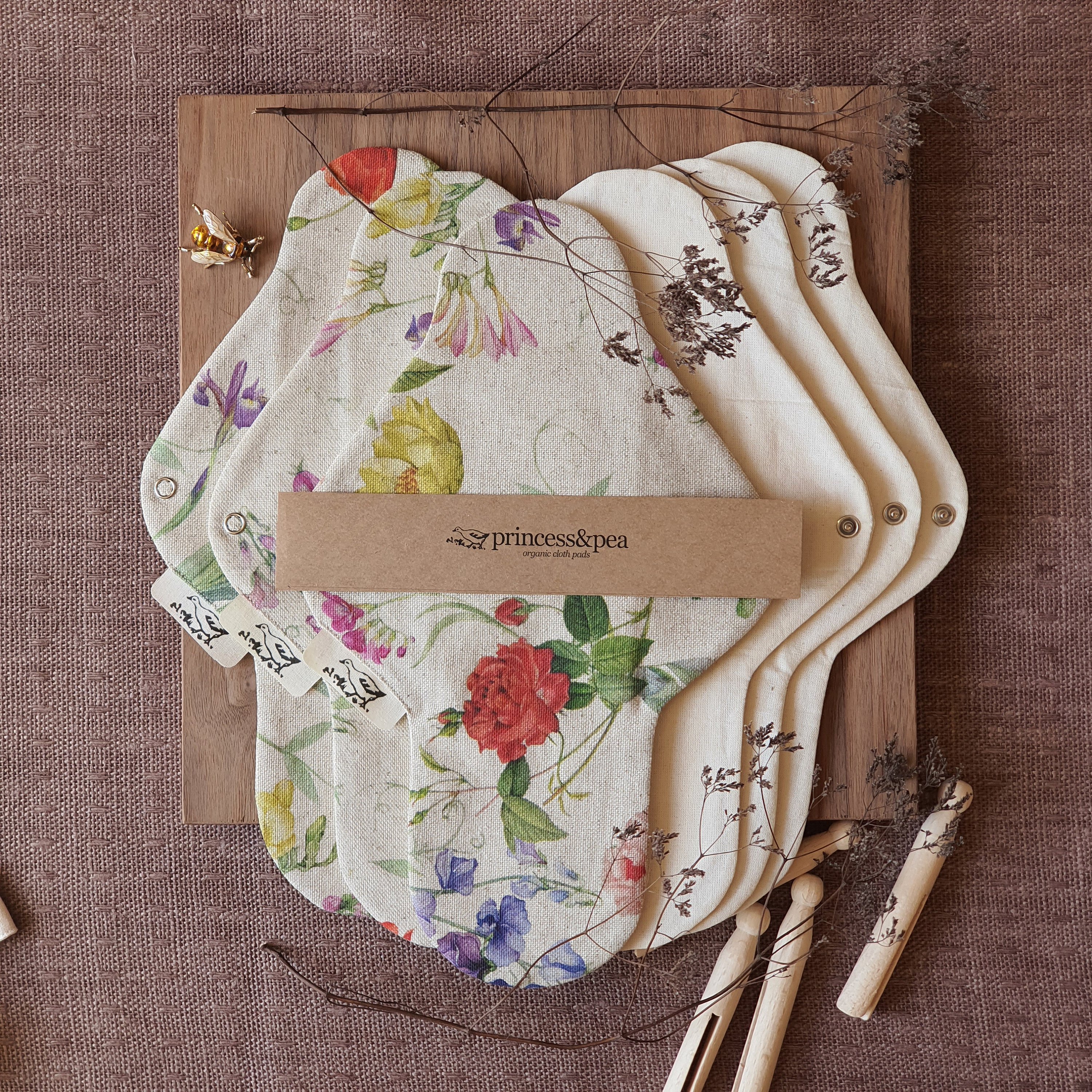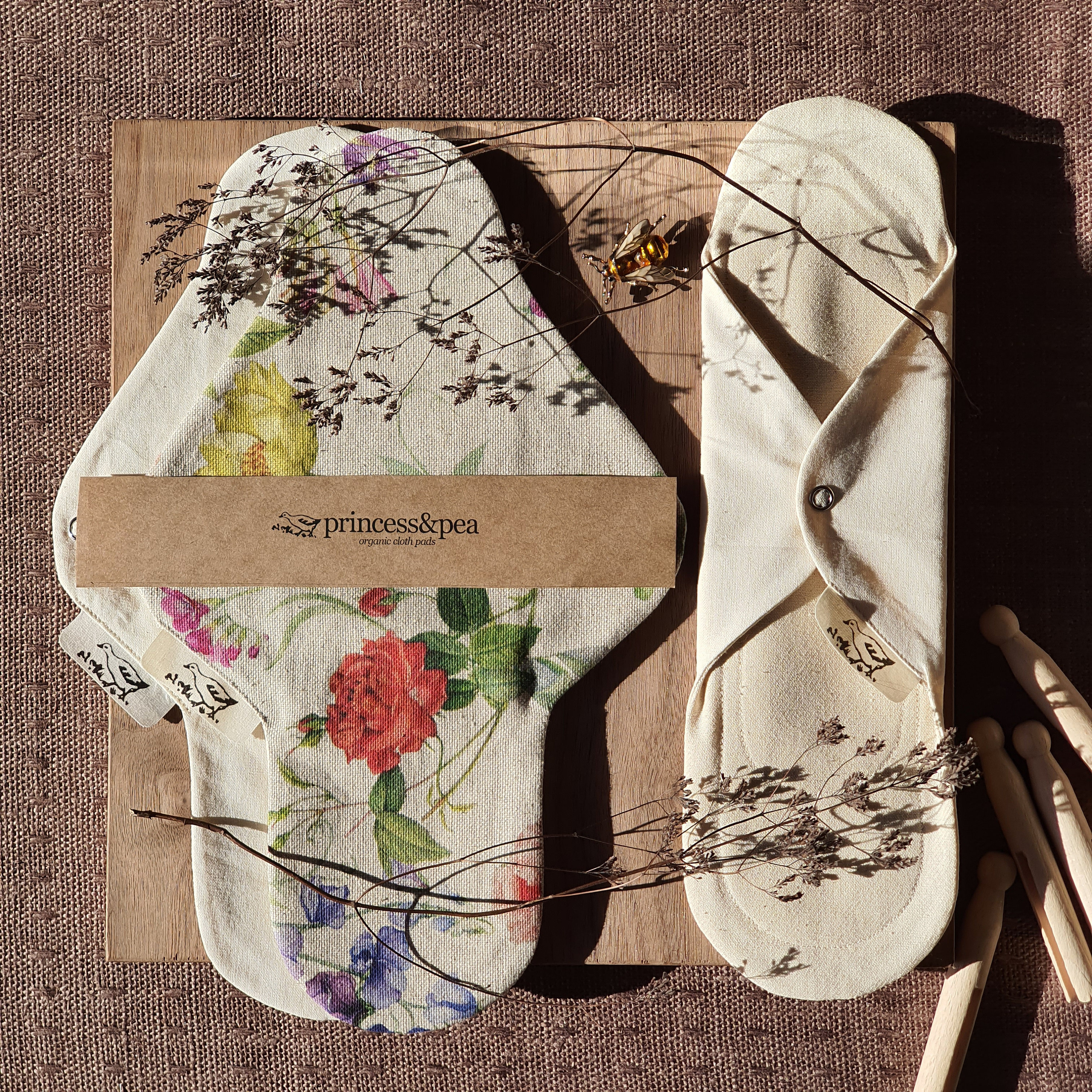 Cotton is the perfect material for reusable sanitary pads as it absorbs the moisture of blood and sweat instead of repelling it. At the same time, cotton is breathable, and won’t disrupt the balance of your vaginal microbiome. They have become a popular alternative because they are allergen- and perfume-free, and can be more comfortable for people who suffer from irritation using disposable pads.