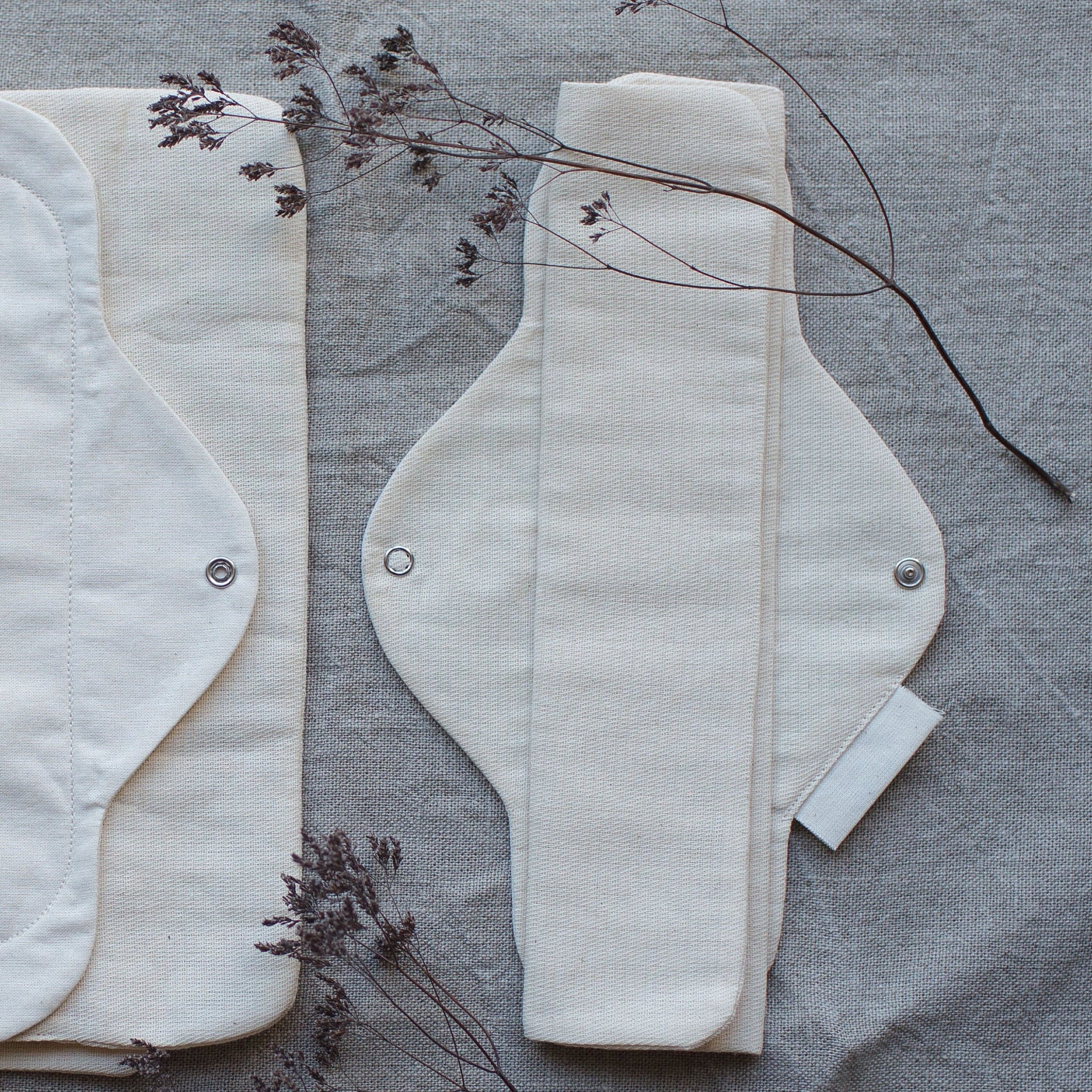 Cotton is the perfect material for reusable sanitary pads as it absorbs the moisture of blood and sweat instead of repelling it. At the same time, cotton is breathable, and won’t disrupt the balance of your vaginal microbiome. They have become a popular alternative because they are allergen- and perfume-free, and can be more comfortable for people who suffer from irritation using disposable pads.