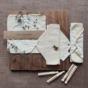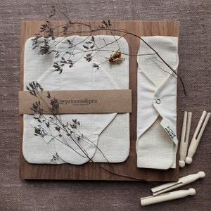 ♥ ZERO WASTE/ NO plastics or synthetic fibres - each pad is handmade, using organic 100% biodegradable, unbleached & undyed cotton fabric and cotton thread in natural cream colour, and stainless steel snaps. Contains zero plastic or synthetic materials so they can be composted! Posted in compostable packaging with zero plastic.